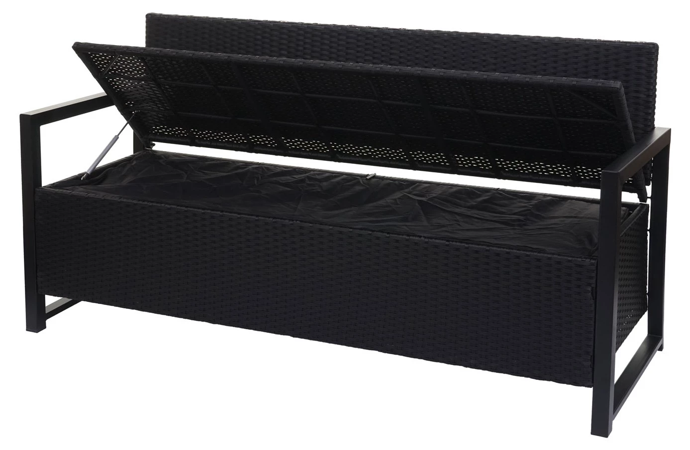 – Dieses 3er Sofa ist schlicht, solide und lässt sich beliebig mit anderen Gartenmöbeln kombinieren. Neben dem hohen Sitzkomfort dank der Armlehnen, lässt sich die Sitzbank durch die Gasdruckfeder mühelos öffnen und verharrt stufenlos in jeder Position.