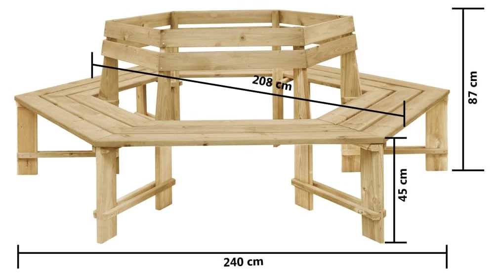 Die Baumbank ist aus hochwertigem imprägniertem Kiefernholz gefertigt, wodurch sie langlebig, witterungs- und verrottungsbeständig ist. Sie wird sich an jede Außenumgebung anpassen. Entspannen Sie sich auf dieser schönen Bank! Der Artikel ist leicht zu montieren.